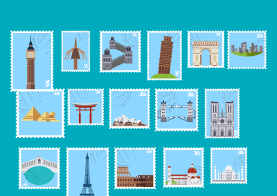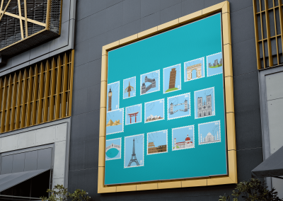 De wereld project combineert wereldkaarten en postzegels om een gevoel van reizen en ontdekkingen te creëren. De focus ligt op details en kleuren, waardoor elk stukje van de wereld en elke postzegel een eigen verhaal vertelt. Gebruikte software: Adobe Illustrator