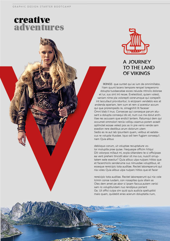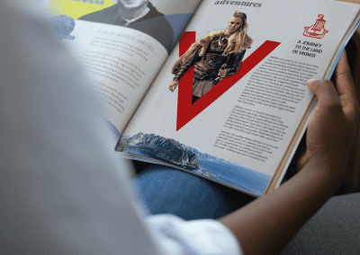 Ik heb een Viking-magazine ontworpen dat de kracht, cultuur en verhalen van de Noorse wereld tot leven brengt. Stoere visuals, ruwe texturen en historische elementen vormen samen een krachtige stijl. Het magazine laat de lezer kennismaken met avonturen, tradities en het dagelijkse leven van de Vikingen, allemaal gepresenteerd in een moderne en visueel sterke lay-out.